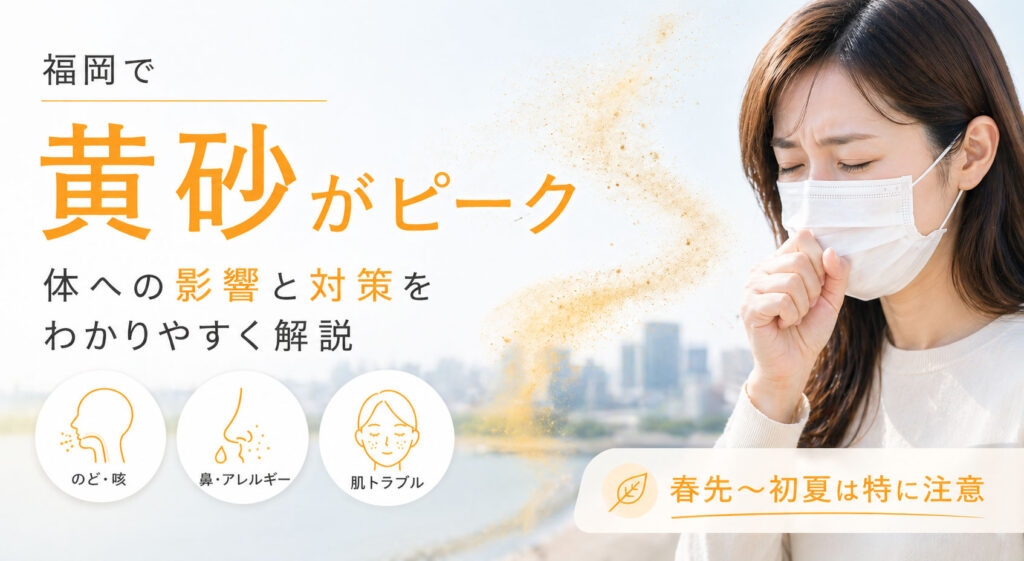 福岡の黄砂対策コラム 福岡で黄砂がピーク 体への影響と対策をわかりやすく解説 春先から初夏にかけて増えやすい黄砂。のど・鼻・肌の不調が気になる方に向けて、体への影響と日常でできる対策をまとめました。 福岡では毎年、春 […]